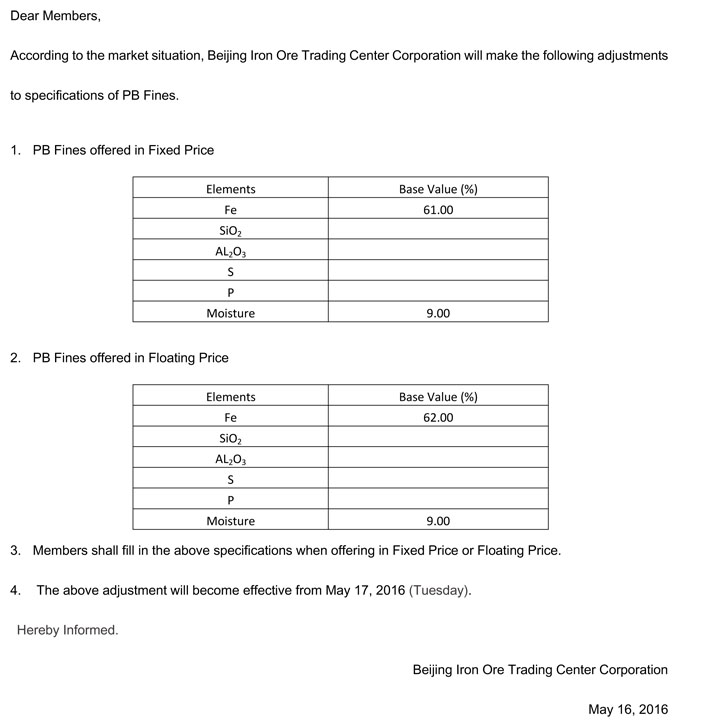 Appendix:Specifications of Trading Products for Iron Ore Spot Trading of Beijing Iron Ore Trading Center (2016.05).pdf