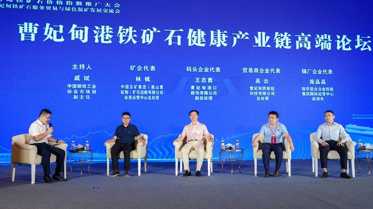 中鋼協(xié)市場調(diào)研部副主任戚斌主持高端論壇,五礦曹妃甸業(yè)務(wù)運營中心總經(jīng)理林楓、曹妃甸港口股份有限公司副總經(jīng)理王志勇、新華聯(lián)合冶金控股集團國際經(jīng)營中心副部長施晶晶、曹妃甸現(xiàn)代供應(yīng)鏈科技有限公司總經(jīng)理高云,圍繞“曹妃甸港鐵礦石健康產(chǎn)業(yè)鏈”主題,分別從近年來鐵礦石行業(yè)發(fā)展、變化的情況,對區(qū)域鐵礦石產(chǎn)業(yè)鏈建設(shè)、當(dāng)下鐵礦石產(chǎn)業(yè)鏈痛點、堵點及解決措施方面進行了探討。