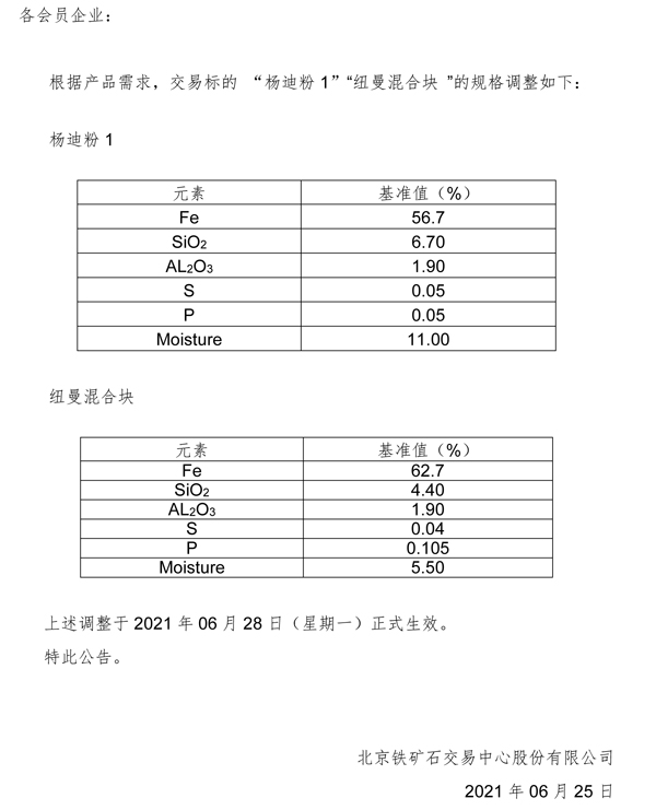 關于調整交易標的規格的公告