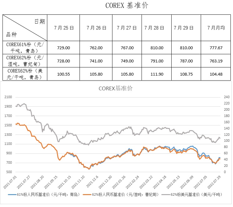 7月25日-7月29日成交51筆共149.3萬噸,其中在途8筆共108.8萬噸,港口43筆共40.5萬噸。主要成交品種包括:PB粉10筆共58.33萬噸,麥克粉11筆共34.6萬噸,FMG混合粉11筆共11.2萬噸,金布巴粉2筆共0.8萬噸。